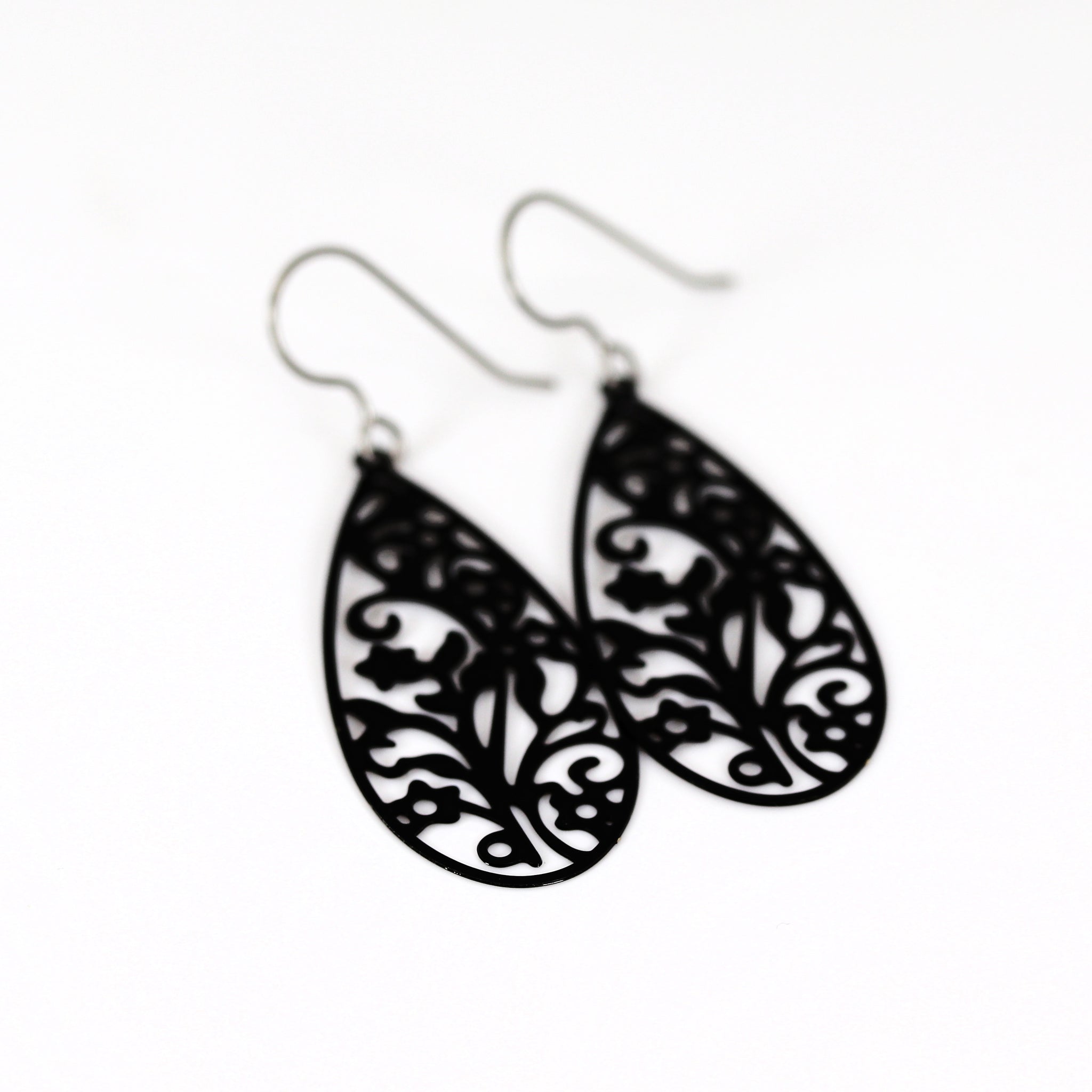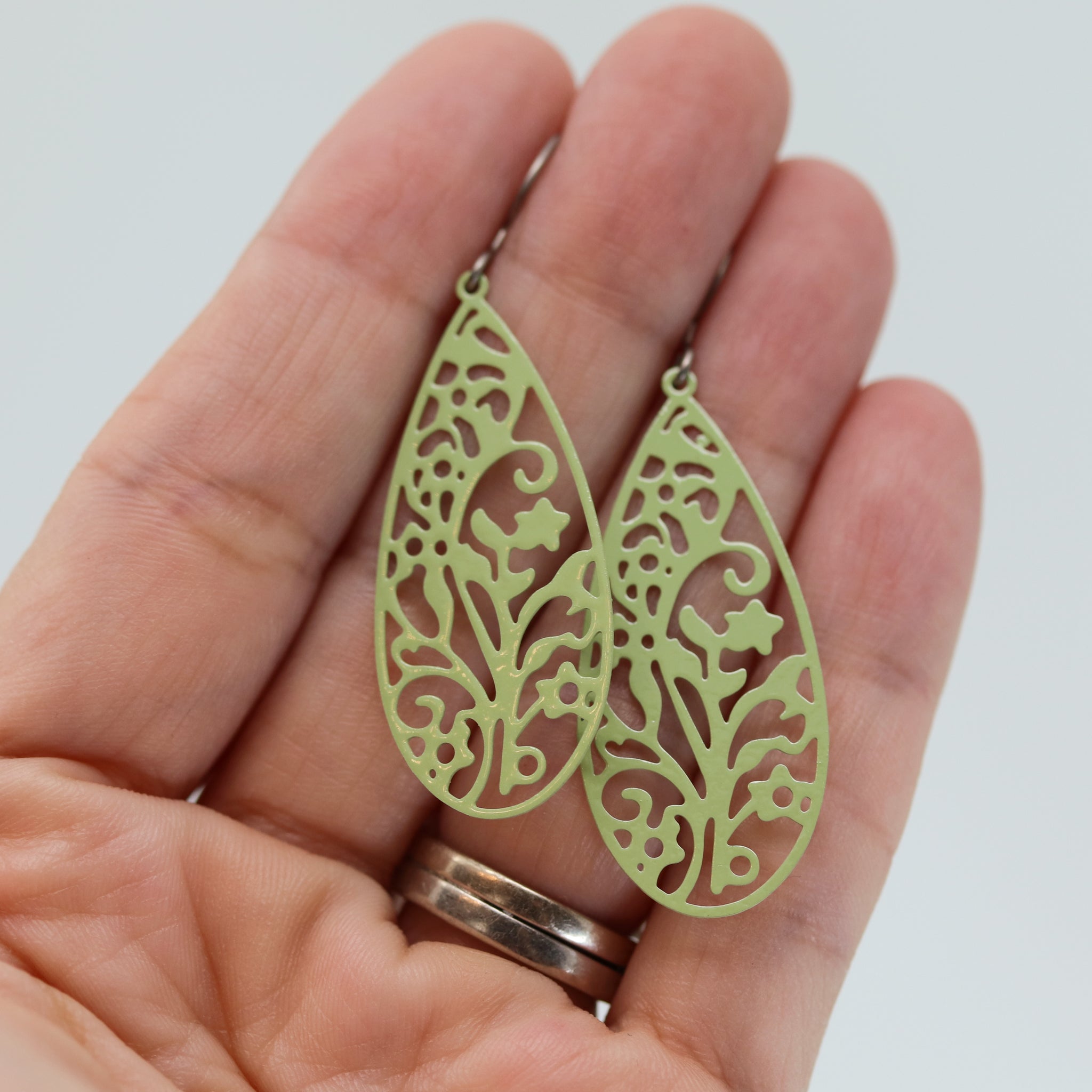 Dainty Floral Filigree Teardrop Dangle Earrings