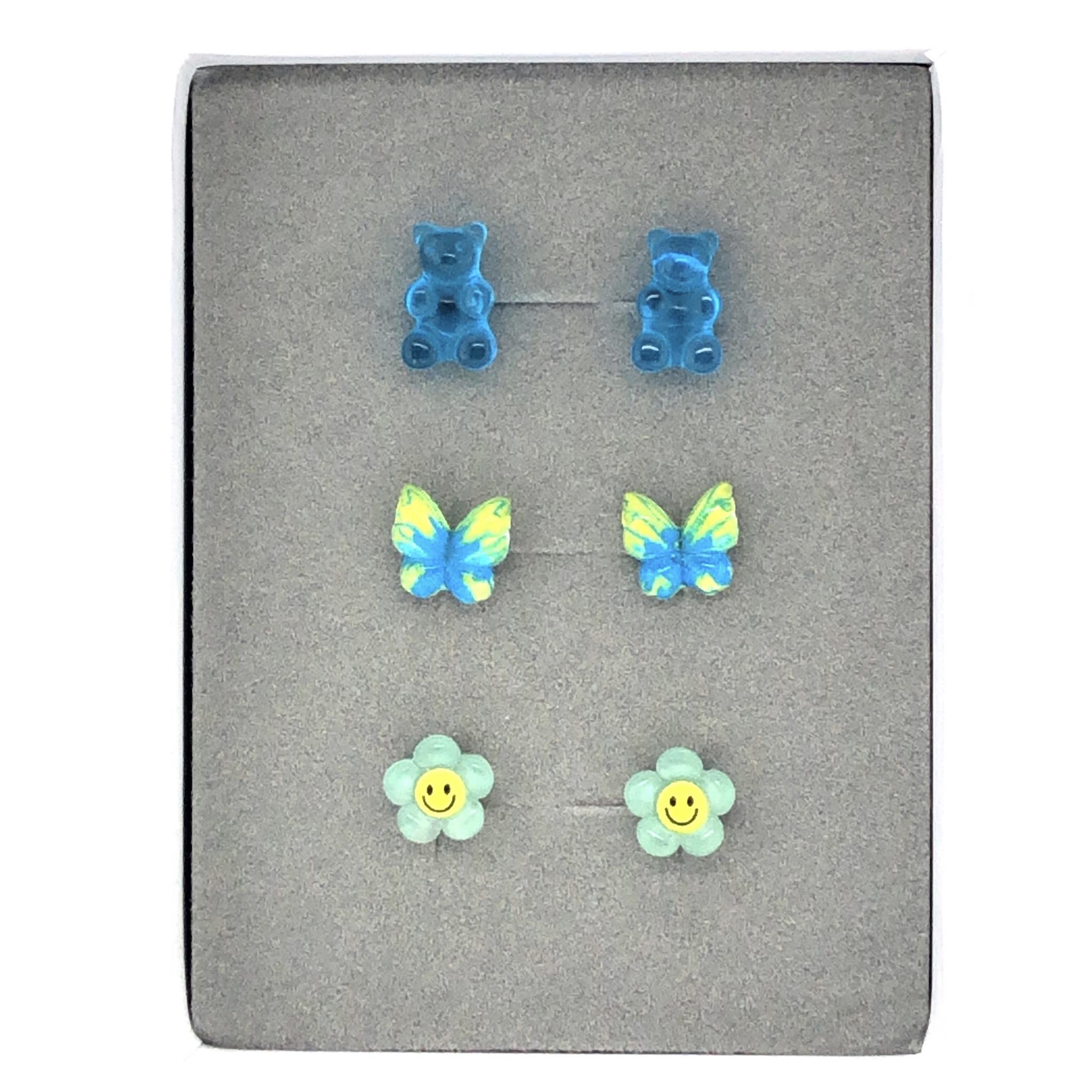Gummy Bear Stud Earring Gift Sets of Three, 8-12mm