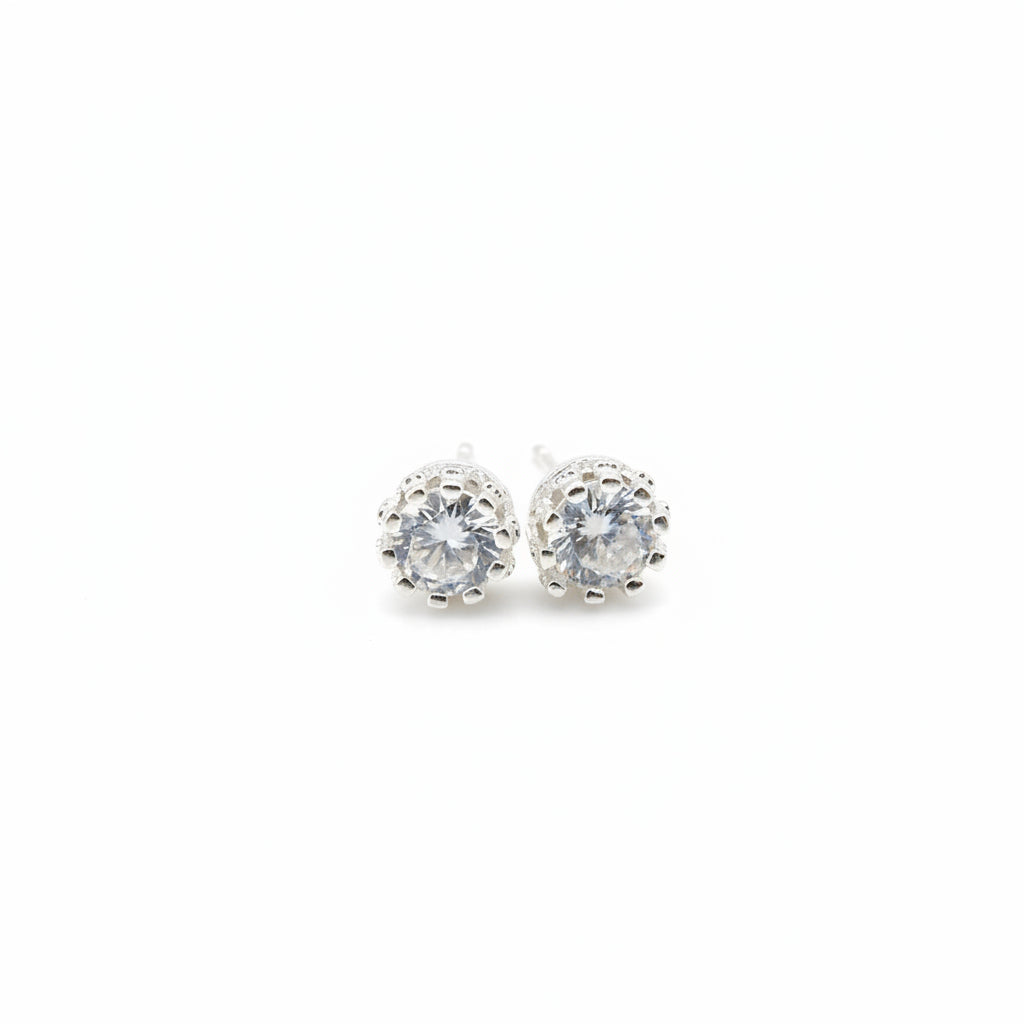 Silver prong set 7mm cubic zirconia studs