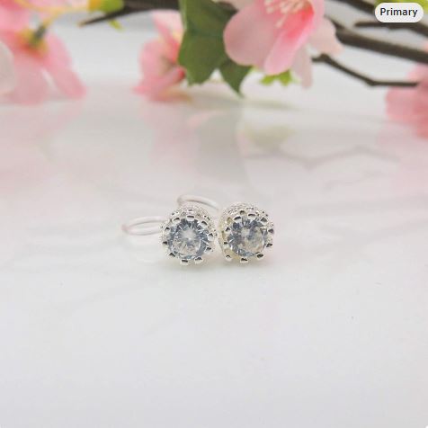 Cubic Zirconia Stud Look Invisible Clip On Earrings, 7mm Prong Set