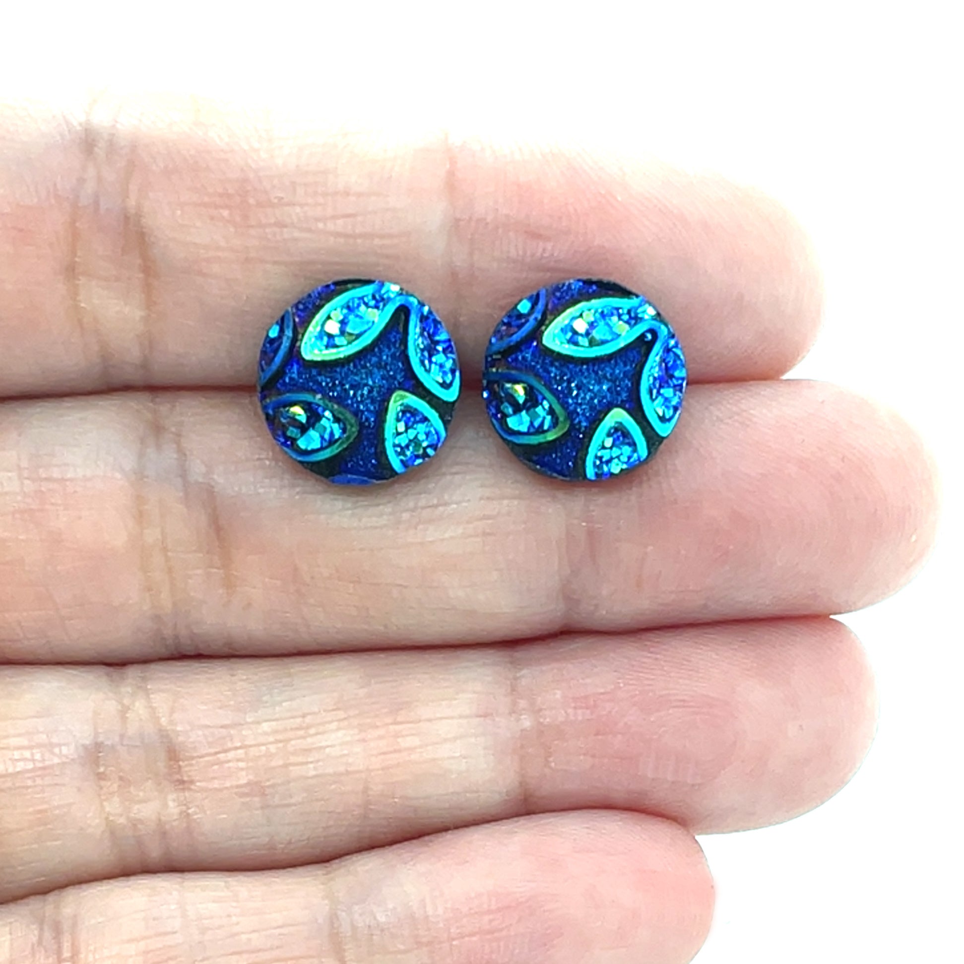Sparkly Floral Cabochon Stud Earrings, 12mm