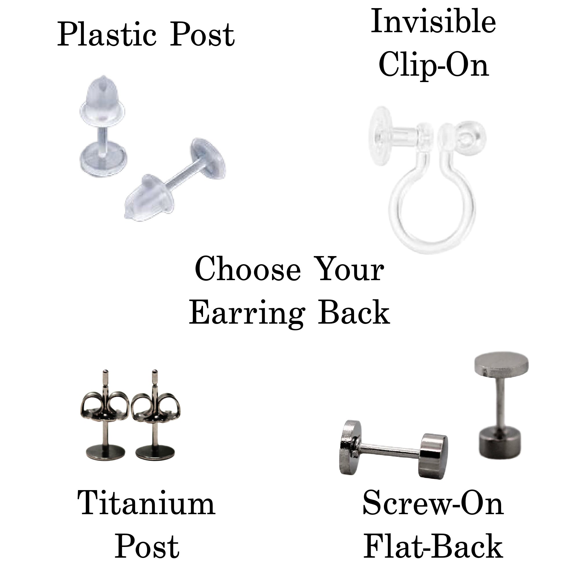 Plastic Post – Ideal for pierced ears and those with metal sensitivities. Completely metal-free, these clear posts are lightweight, flexible, and hypoallergenic.