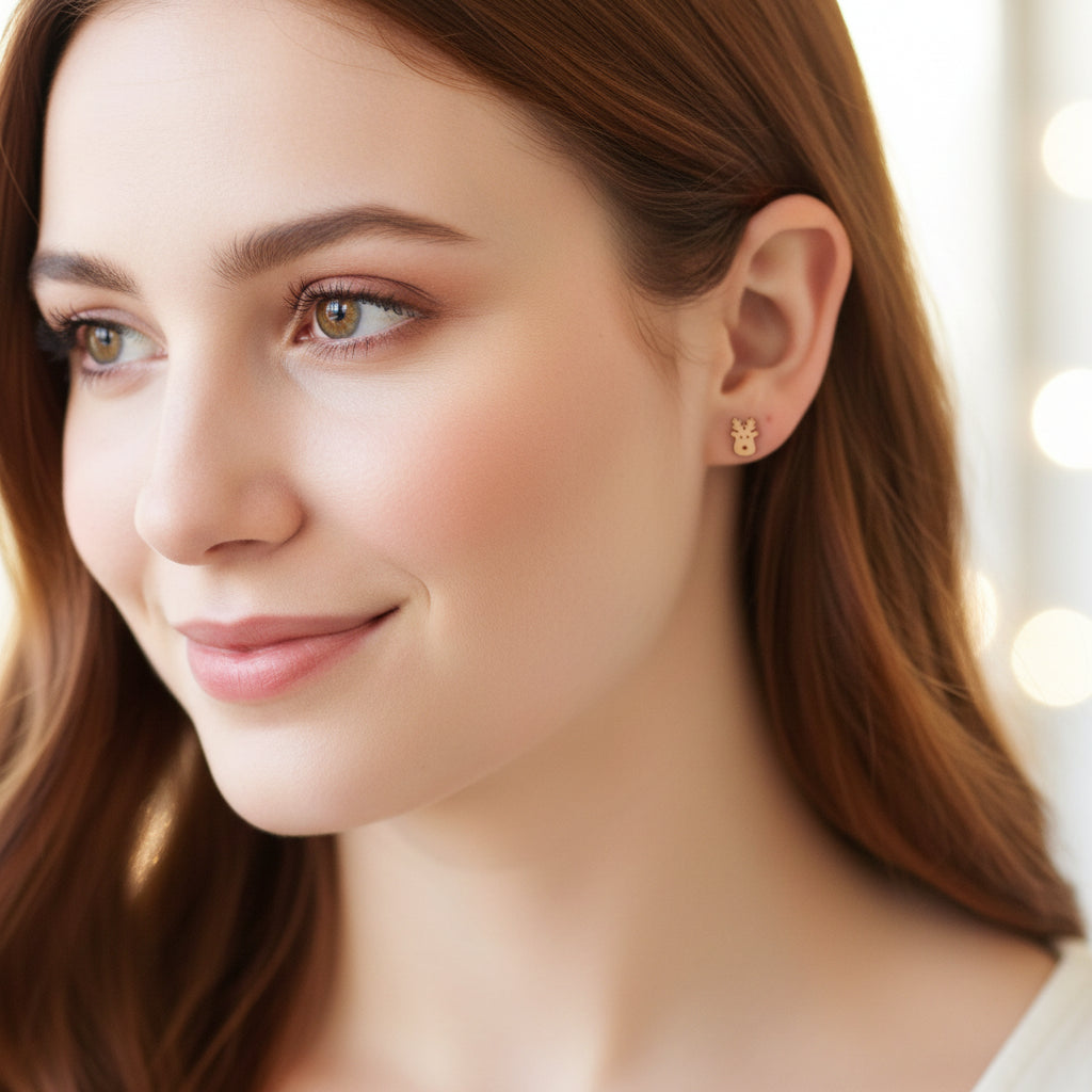 Stainless steel dainty reindeer stud earrings for sensitive ears.