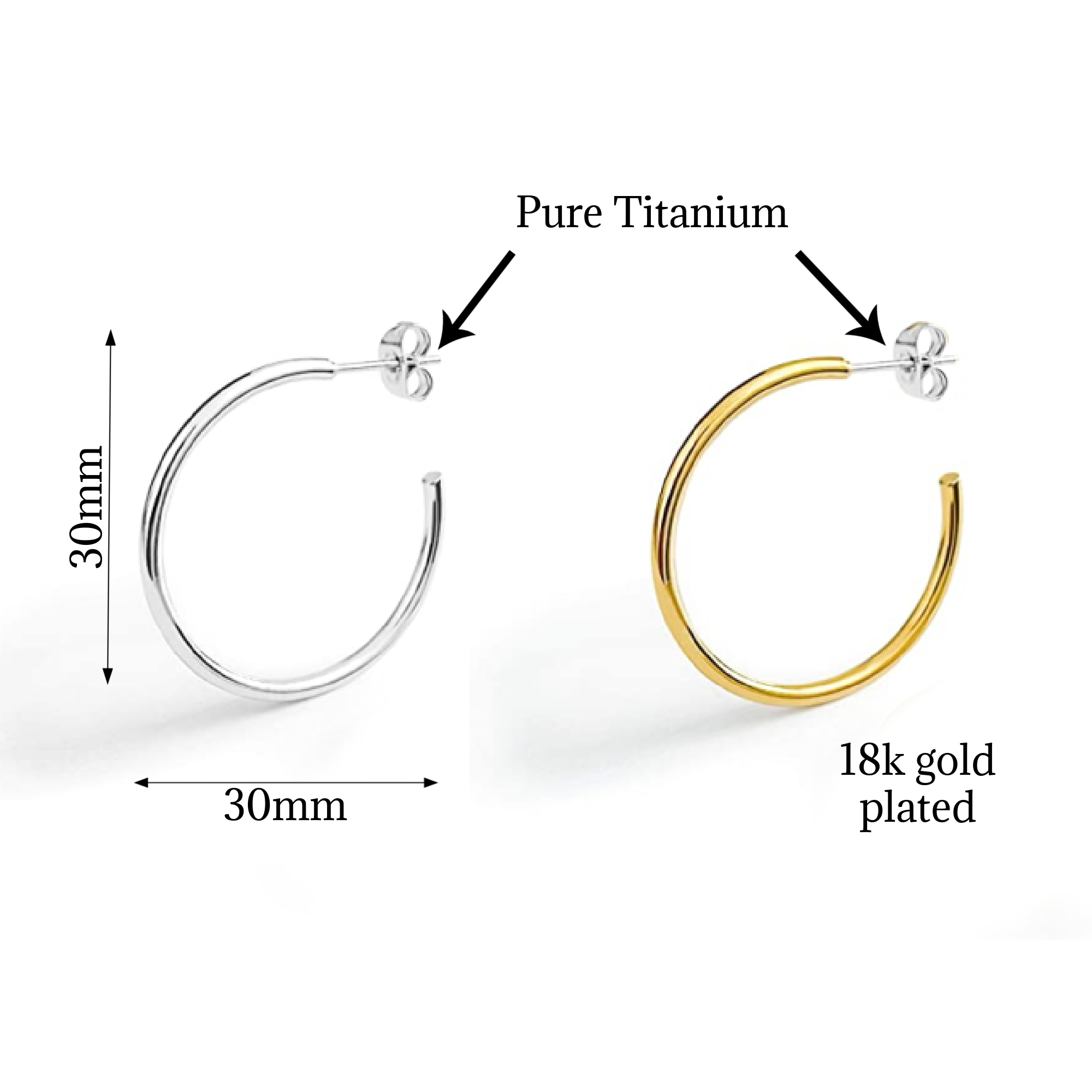 Boucles d'oreilles créoles en titane pur de 30 mm