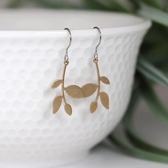Boucles d'oreilles pendantes légères en forme de branche de feuille