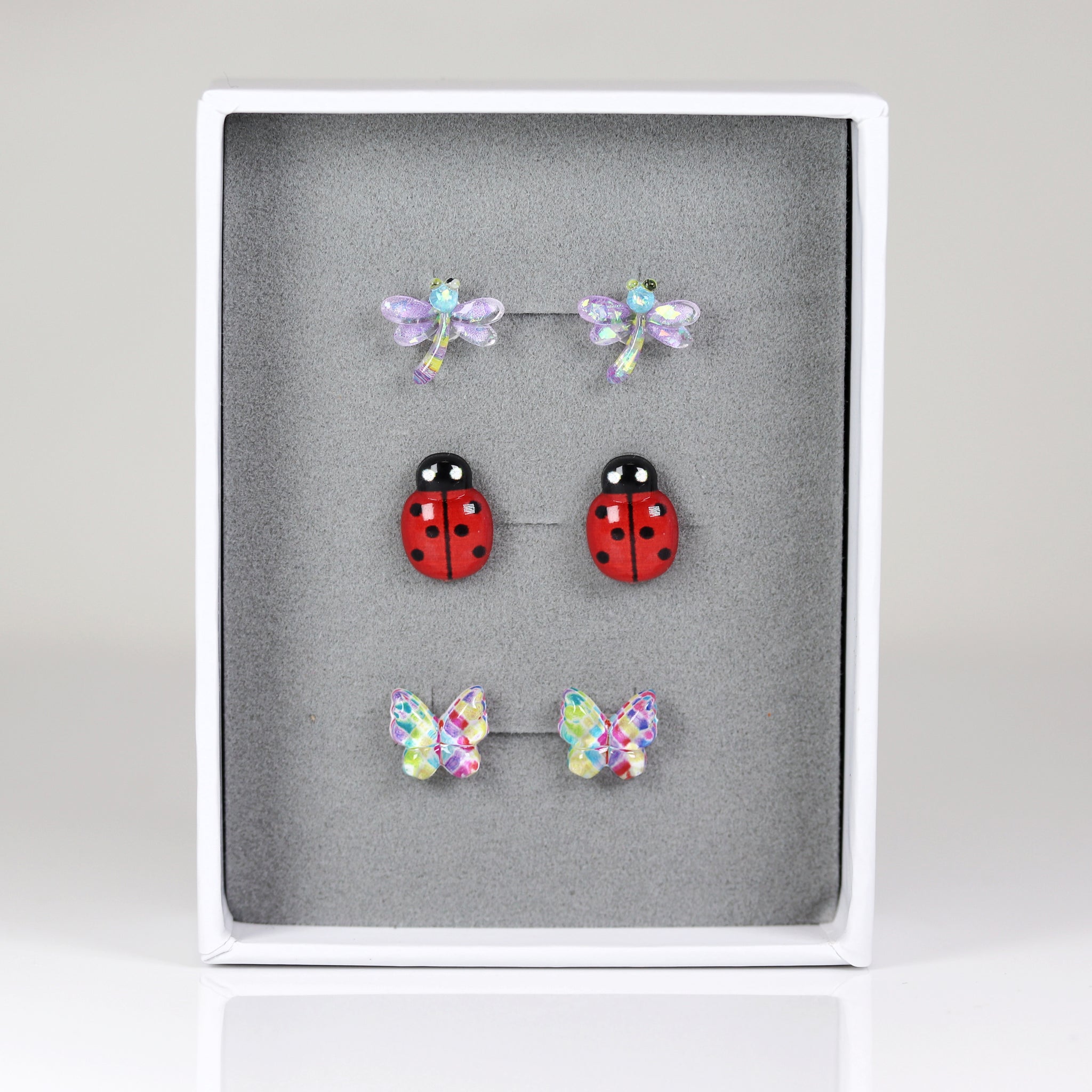 Coffret cadeau de boucles d'oreilles à tige Libellule, coccinelle et papillon