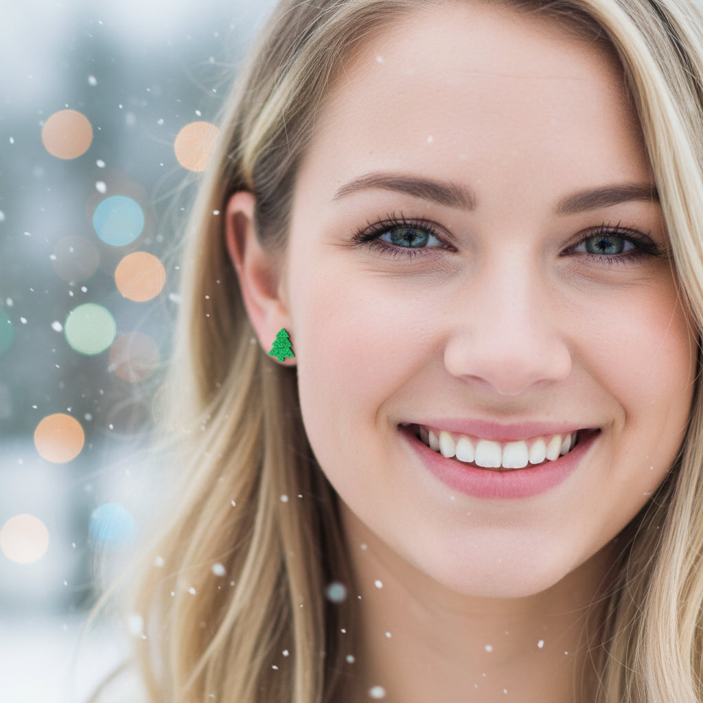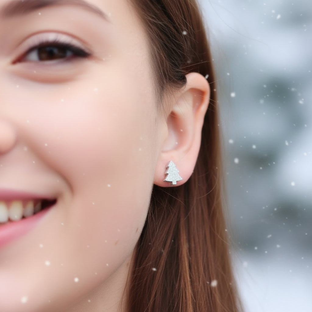 Boucles d'oreilles à tige en forme de sapin de Noël pailleté, 11 mm