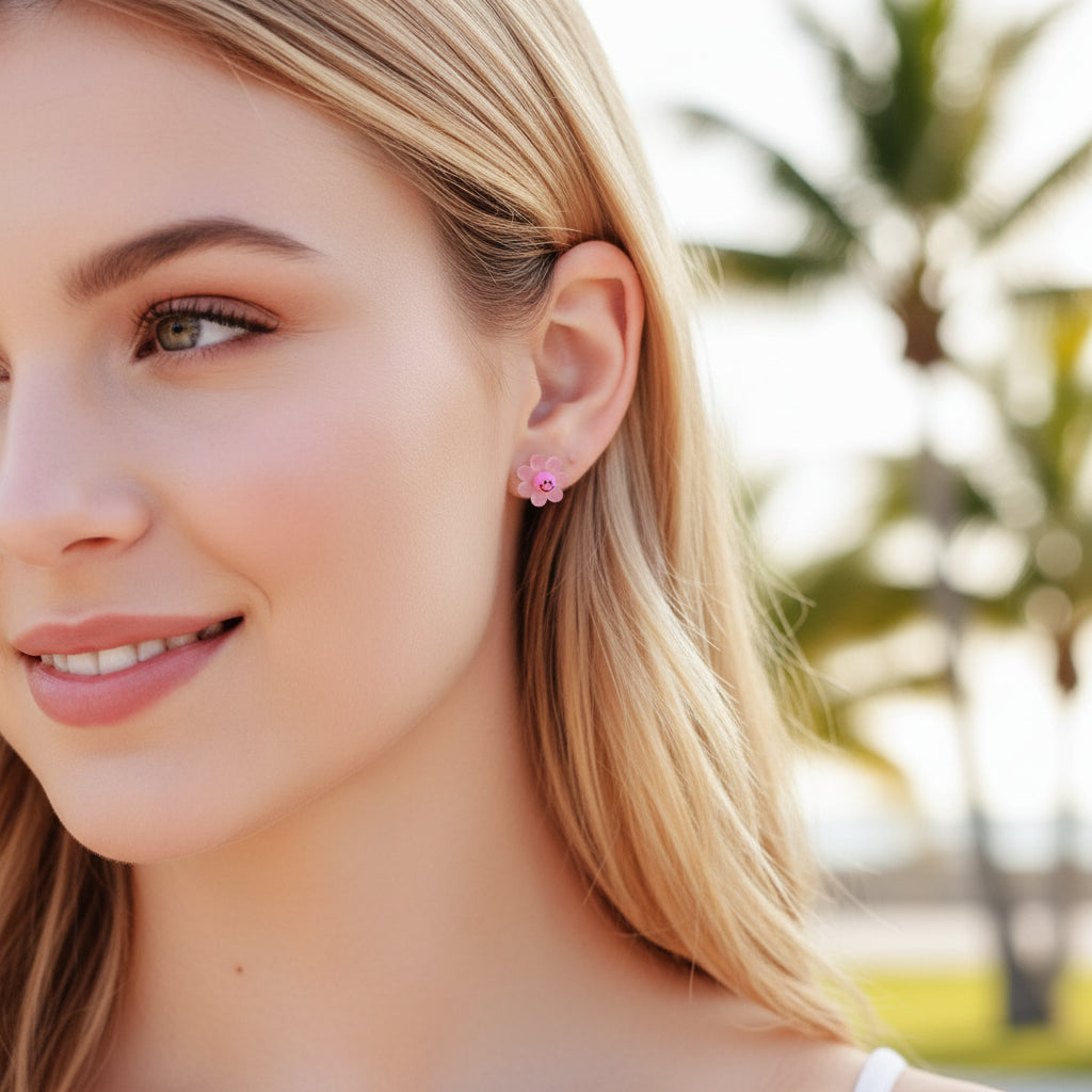 Boucles d'oreilles en forme de fleur souriante de 12 mm sur tiges en plastique pour oreilles sensibles au métal.