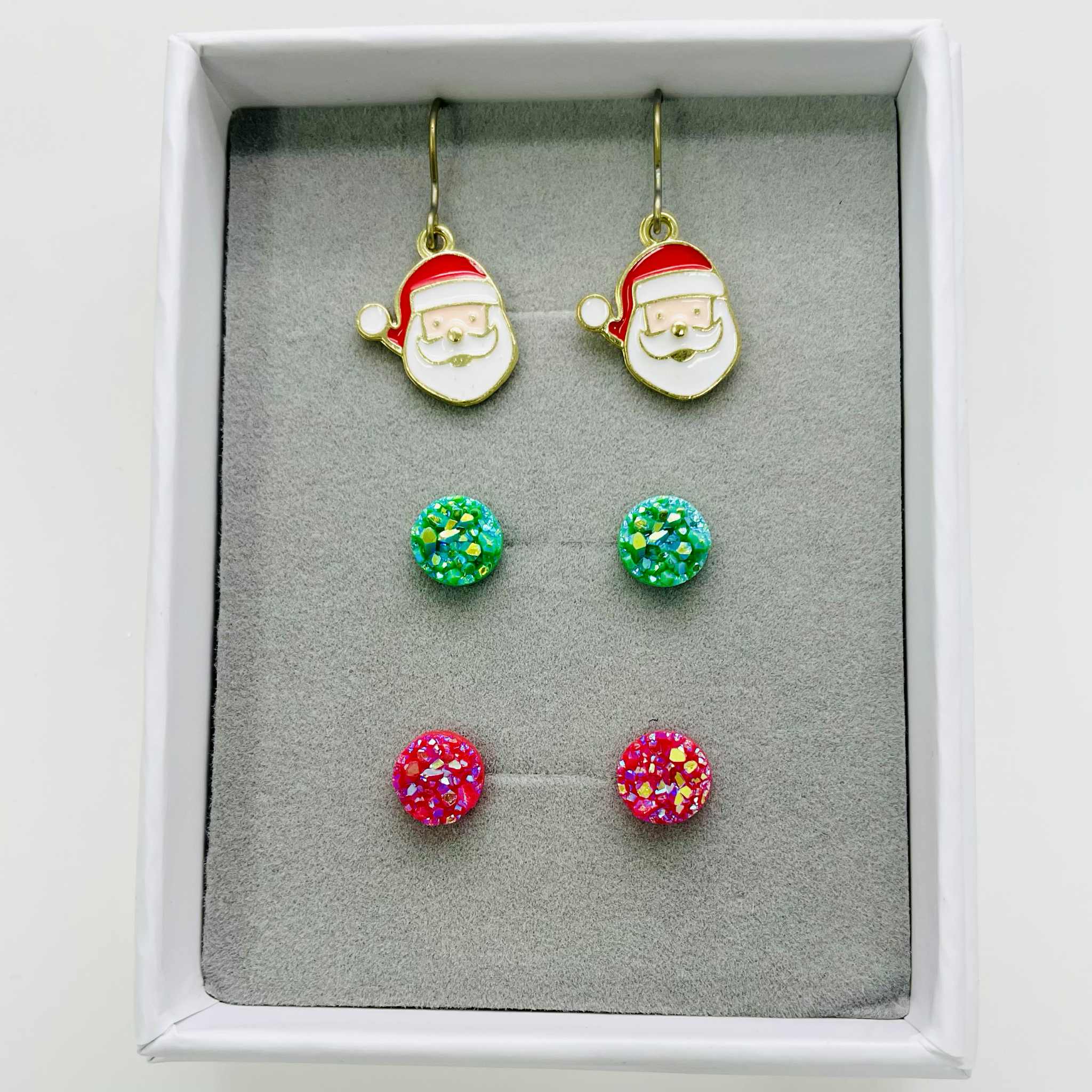 8mm Druzy Green & Red, Santa Dangle - Earrings Set