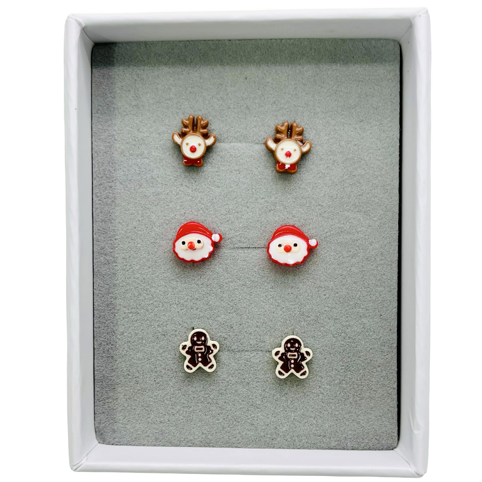 10mm Vintage Reindeer, Santa, Gingerbread - Stud Earrings Set