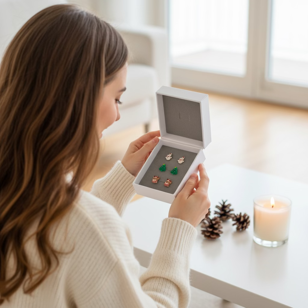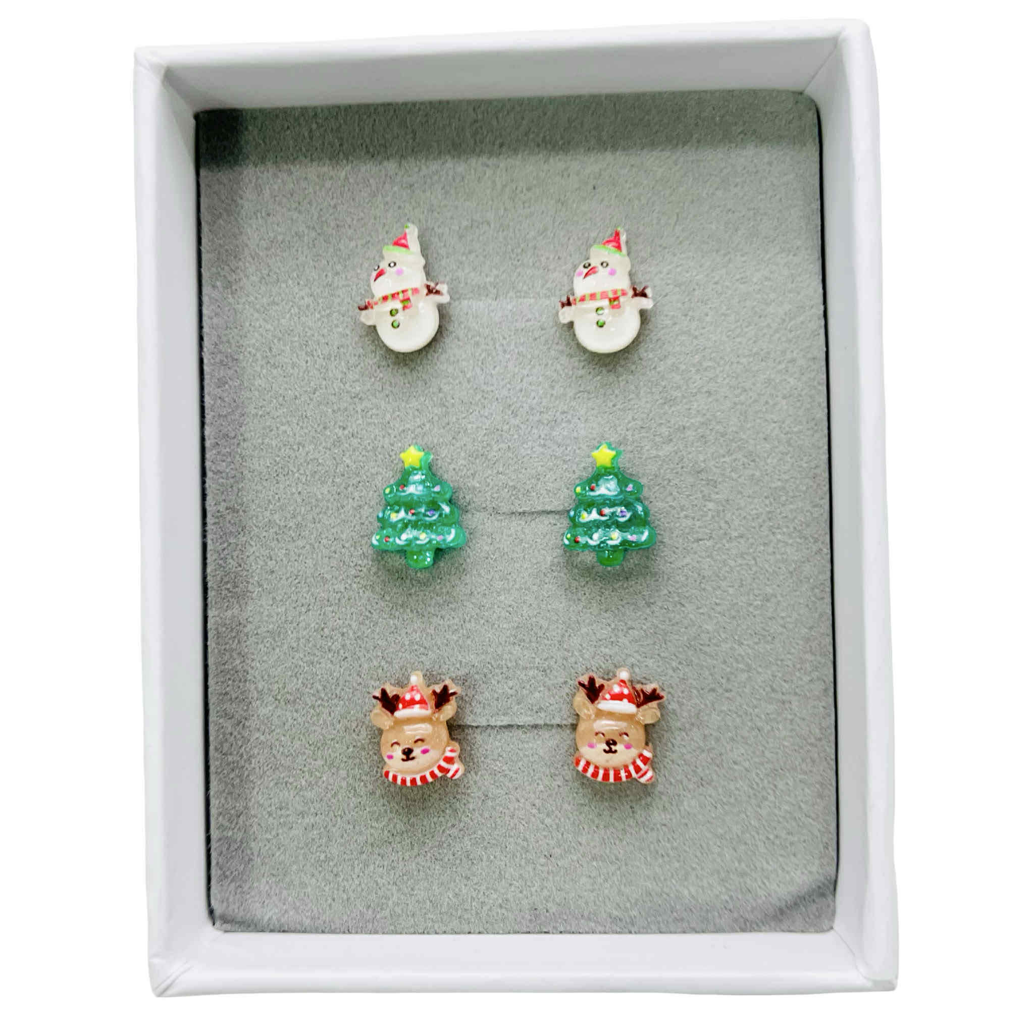 10mm Snowman, Christmas Tree, Reindeer - Stud Earrings Set
