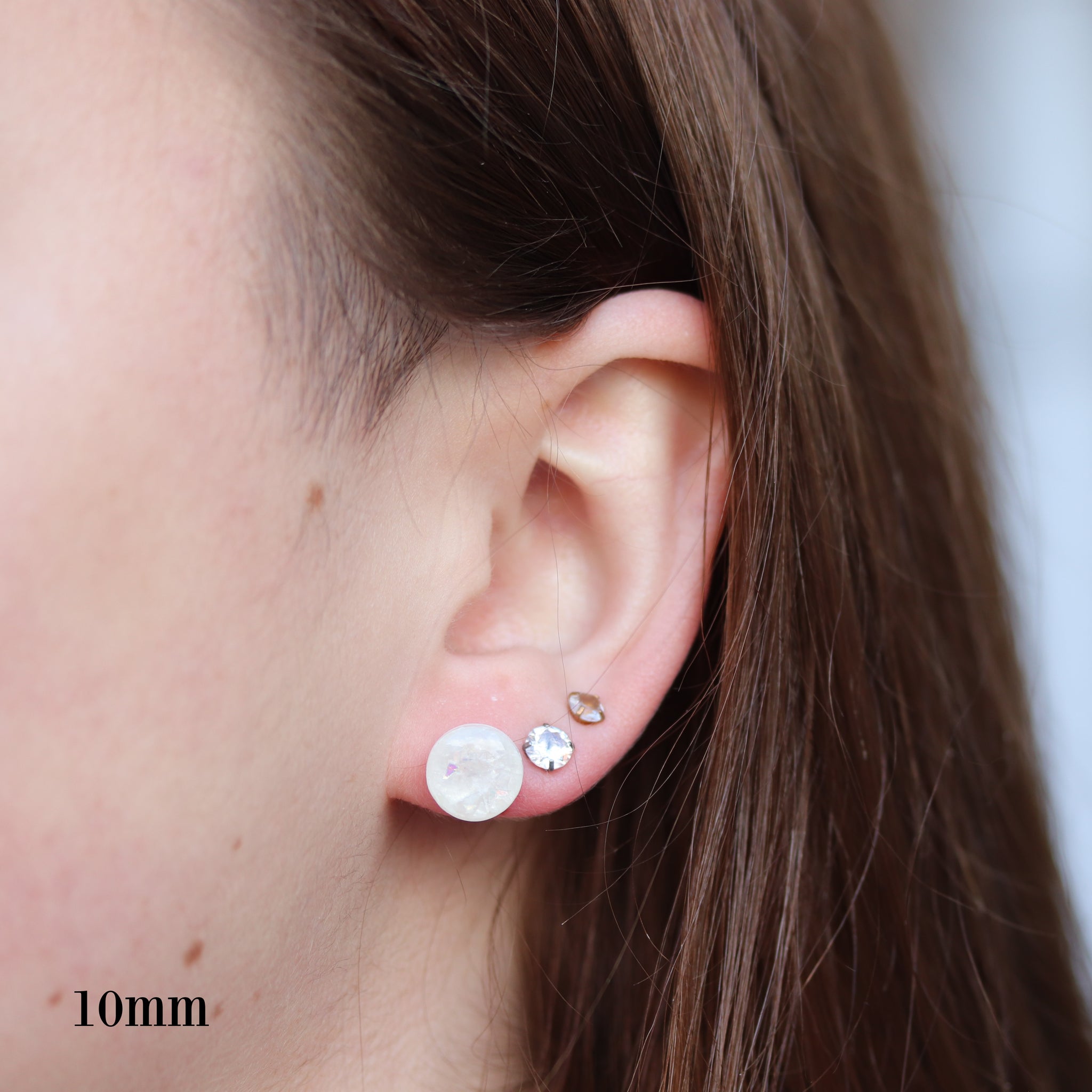 Boucles d'oreilles à tige en résine opalescente, 8 mm ou 10 mm