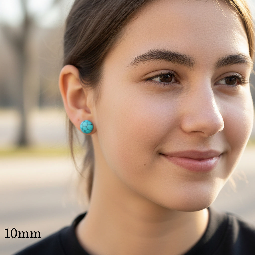 Boucles d'oreilles à tige en pierre turquoise synthétique, 8 mm, 10 mm